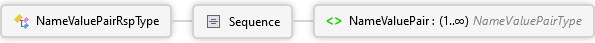 <xs:complexType name="NameValuePairRspType" xmlns:xs="http://www.w3.org/2001/XMLSchema"> <xs:sequence> <xs:element name="NameValuePair" type="NameValuePairType" maxOccurs="unbounded" /> </xs:sequence> </xs:complexType>