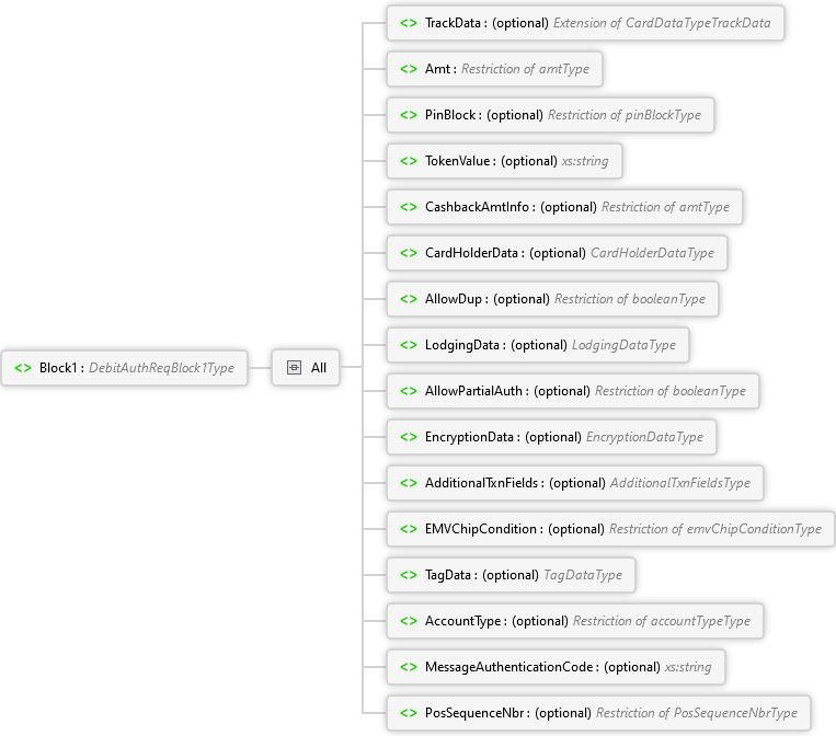 Note: TokenValue and TrackData are mutually exclusive, but it is required that one of these elements be provided. PinBlock can either be sent as part of the request or it can be associated with a token but it must be provided as well.