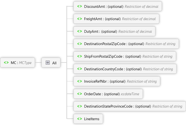 <xs:element name="MC" type="MCType" xmlns:xs="http://www.w3.org/2001/XMLSchema"> <xs:annotation> <xs:documentation> <p xmlns="http://Hps.Exchange.PosGateway">MC Corporate/Purchasing Card Level III data.</p> </xs:documentation> </xs:annotation> </xs:element>