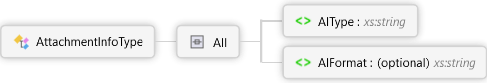<xs:complexTypename="AttachmentInfoType"xmlns:xs="http://www.w3.org/2001/XMLSchema"><xs:all><xs:elementname="AIType"type="xs:string"><xs:annotation><xs:documentation><pxmlns="http://Hps.Exchange.PosGateway">Identifies the attachment type; see Simple Types, attachmentTypeType enumerations for specific values supported.</p></xs:documentation></xs:annotation></xs:element><xs:elementname="AIFormat"type="xs:string"minOccurs="0"><xs:annotation><xs:documentation><pxmlns="http://Hps.Exchange.PosGateway">Identifies the format of the attachment data; see Simple Types, attachmentFormatType enumerations for specific values supported</p></xs:documentation></xs:annotation></xs:element></xs:all></xs:complexType>