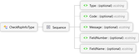 <xs:complexTypename="CheckRspInfoType"xmlns:xs="http://www.w3.org/2001/XMLSchema"><xs:sequence><xs:elementname="Type"type="xs:string"minOccurs="0"><xs:annotation><xs:documentation><pxmlns="http://Hps.Exchange.PosGateway">