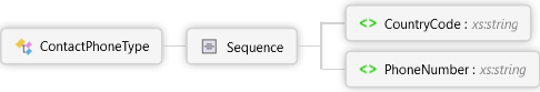 <xs:complexType name="ContactPhoneType" xmlns:xs="http://www.w3.org/2001/XMLSchema"> <xs:sequence> <xs:element name="CountryCode" type="xs:string" /> <xs:element name="PhoneNumber" type="xs:string" /> </xs:sequence> </xs:complexType>