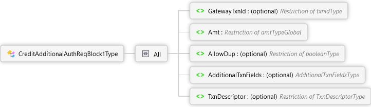 PosGateway Schema : CreditAdditionalAuthReqBlock1Type Complex Type