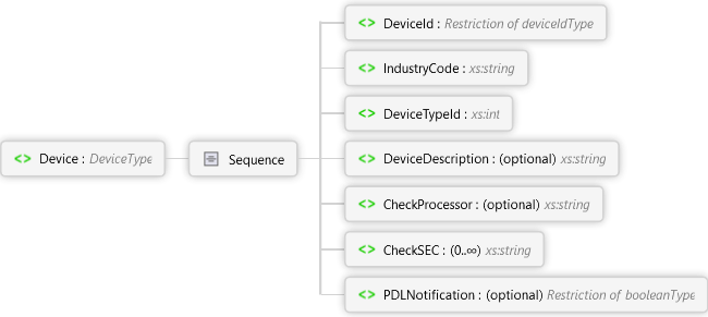 PDLNotification Element CheckSEC Element CheckProcessor Element DeviceDescription Element DeviceTypeId Element IndustryCode Element DeviceId Element Sequence Device Element