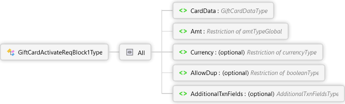 AdditionalTxnFields Element AllowDup Element Currency Element Amt Element CardData Element All GiftCardActivateReqBlock1Type Complex Type