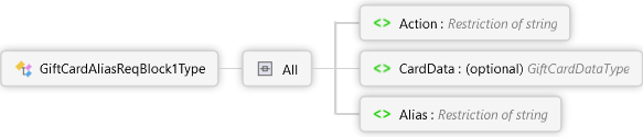 Alias Element CardData Element Action Element All GiftCardAliasReqBlock1Type Complex Type