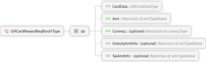 TaxAmtInfo Element GratuityAmtInfo Element Currency Element Amt Element CardData Element All GiftCardRewardReqBlock1Type Complex Type