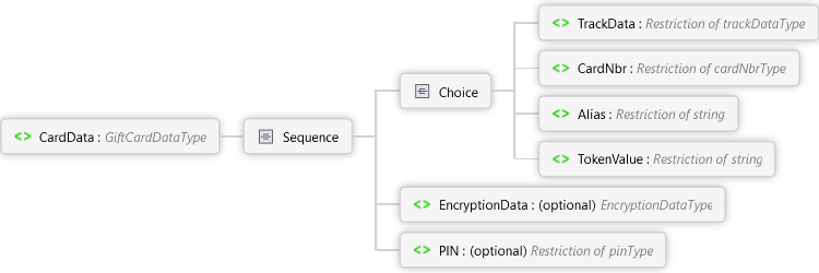 PIN Element EncryptionData Element TokenValue Element Alias Element CardNbr Element TrackData Element Choice Sequence CardData Element