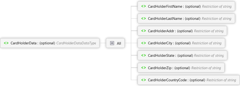 <xs:element name="CardHolderData" type="CardHolderDataDataType" minOccurs="0" xmlns:xs="http://www.w3.org/2001/XMLSchema"> <xs:annotation> <xs:documentation> <p xmlns="http://Hps.Exchange.PosGateway">Cardholder-related data.</p> </xs:documentation> </xs:annotation> </xs:element>