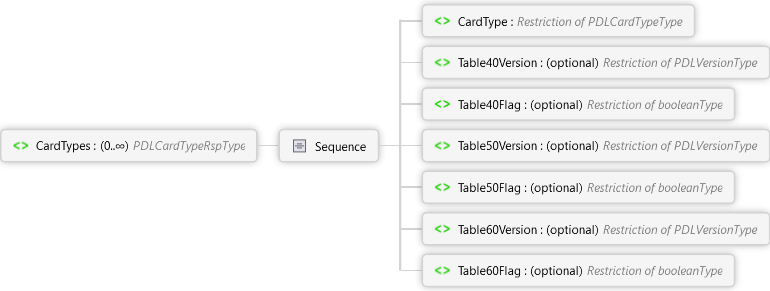 <xs:elementname="CardTypes"type="PDLCardTypeRspType"minOccurs="0"maxOccurs="unbounded"xmlns:xs="http://www.w3.org/2001/XMLSchema"><xs:annotation><xs:documentation><pxmlns="http://Hps.Exchange.PosGateway">Card type data</p></xs:documentation></xs:annotation></xs:element>