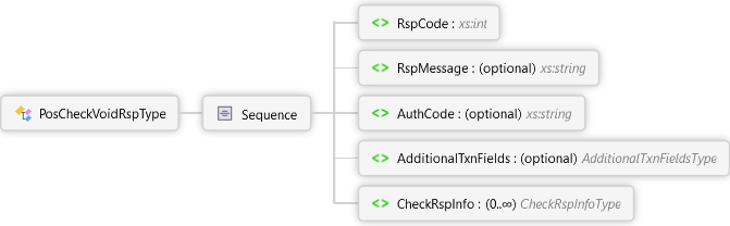 CheckRspInfo Element AdditionalTxnFields Element AuthCode Element RspMessage Element RspCode Element Sequence PosCheckVoidRspType Complex Type