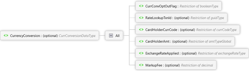 MarkupFee Element ExchangeRateApplied Element CardHolderAmt Element CardHolderCurrCode Element RateLookupTxnId Element CurrConvOptOutFlag Element All CurrencyConversion Element