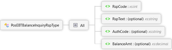 BalanceAmt Element AuthCode Element RspText Element RspCode Element All PosEBTBalanceInquiryRspType Complex Type