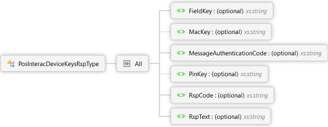 RspText Element RspCode Element PinKey Element MessageAuthenticationCode Element MacKey Element FieldKey Element All PosInteracDeviceKeysRspType Complex Type
