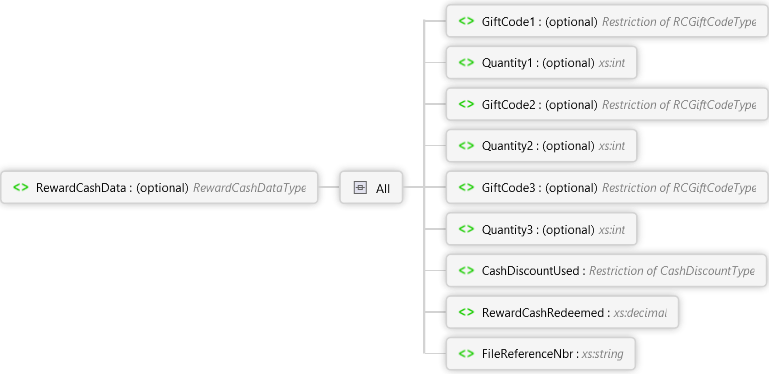 <xs:element name="RewardCashData" type="RewardCashDataType" minOccurs="0" xmlns:xs="http://www.w3.org/2001/XMLSchema"> <xs:annotation> <xs:documentation> <p xmlns="http://Hps.Exchange.PosGateway">RewardCashData details.</p> </xs:documentation> </xs:annotation> </xs:element>