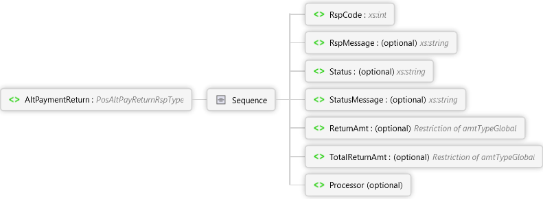 Processor Element TotalReturnAmt Element ReturnAmt Element StatusMessage Element Status Element RspMessage Element RspCode Element Sequence AltPaymentReturn Element