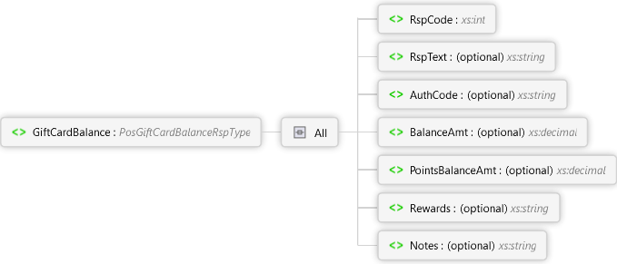 Notes Element Rewards Element PointsBalanceAmt Element BalanceAmt Element AuthCode Element RspText Element RspCode Element All GiftCardBalance Element