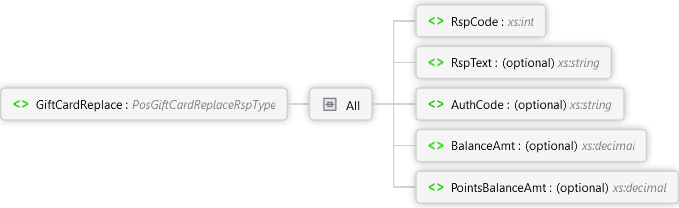 PointsBalanceAmt Element BalanceAmt Element AuthCode Element RspText Element RspCode Element All GiftCardReplace Element