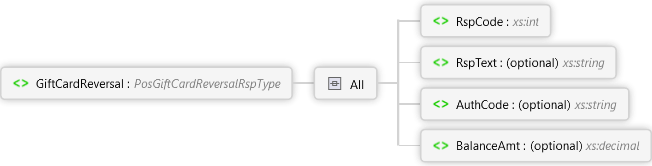 BalanceAmt Element AuthCode Element RspText Element RspCode Element All GiftCardReversal Element