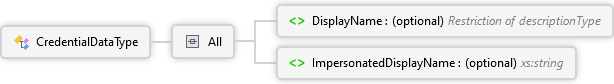 <xs:complexType name="CredentialDataType" xmlns:xs="http://www.w3.org/2001/XMLSchema"> <xs:all> <xs:element name="DisplayName" type="descriptionType" minOccurs="0"> <xs:annotation> <xs:documentation> <p xmlns="http://Hps.Exchange.PosGateway">User display name</p> </xs:documentation> </xs:annotation> </xs:element> <xs:element name="ImpersonatedDisplayName" type="xs:string" minOccurs="0"> <xs:annotation> <xs:documentation> <p xmlns="http://Hps.Exchange.PosGateway">Impersonated user display name</p> </xs:documentation> </xs:annotation> </xs:element> </xs:all> </xs:complexType>