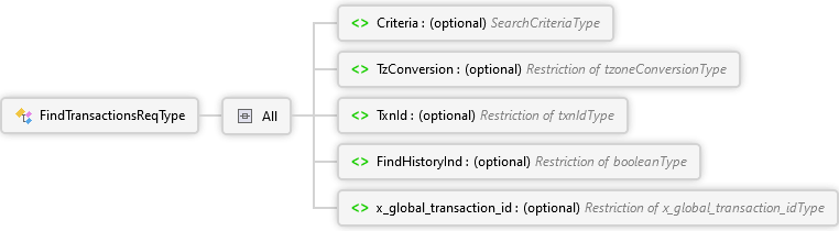 x_global_transaction_id Element FindHistoryInd Element TxnId Element TzConversion Element Criteria Element All FindTransactionsReqType Complex Type