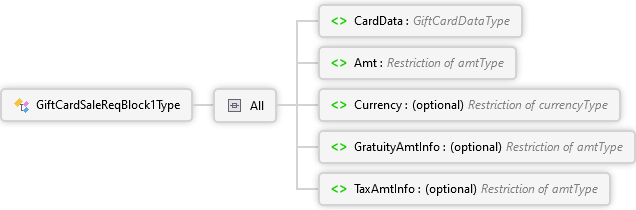 TaxAmtInfo Element GratuityAmtInfo Element Currency Element Amt Element CardData Element All GiftCardSaleReqBlock1Type Complex Type