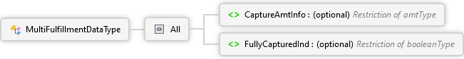 <xs:complexTypename="MultiFulfillmentDataType"xmlns:xs="http://www.w3.org/2001/XMLSchema"><xs:all><xs:elementname="CaptureAmtInfo"type="amtType"minOccurs="0"><xs:annotation><xs:documentation>Captured Amount</xs:documentation></xs:annotation></xs:element><xs:elementname="FullyCapturedInd"type="booleanType"minOccurs="0"><xs:annotation><xs:documentation><pxmlns="http://Hps.Exchange.PosGateway">Indicates whether or not the AltpaymentCapture has been fully captured.</p></xs:documentation></xs:annotation></xs:element></xs:all></xs:complexType>