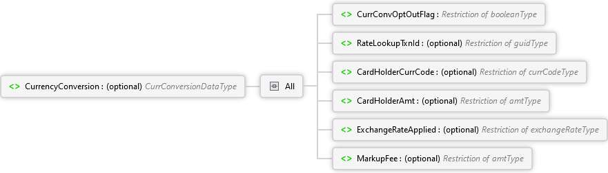 MarkupFee Element ExchangeRateApplied Element CardHolderAmt Element CardHolderCurrCode Element RateLookupTxnId Element CurrConvOptOutFlag Element All CurrencyConversion Element