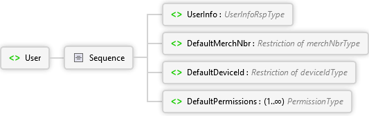 DefaultPermissions Element DefaultDeviceId Element DefaultMerchNbr Element UserInfo Element Sequence User Element