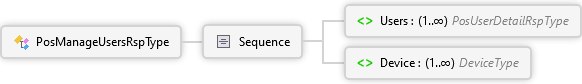 <xs:complexType name="PosManageUsersRspType" xmlns:xs="http://www.w3.org/2001/XMLSchema"> <xs:sequence> <xs:element name="Users" type="PosUserDetailRspType" maxOccurs="unbounded" /> <xs:element name="Device" type="DeviceType" maxOccurs="unbounded" /> </xs:sequence> </xs:complexType>