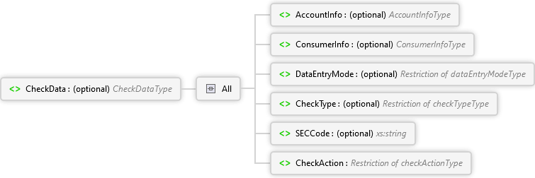 CheckAction Element SECCode Element CheckType Element DataEntryMode Element ConsumerInfo Element AccountInfo Element All CheckData Element