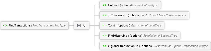 x_global_transaction_id Element FindHistoryInd Element TxnId Element TzConversion Element Criteria Element All FindTransactions Element