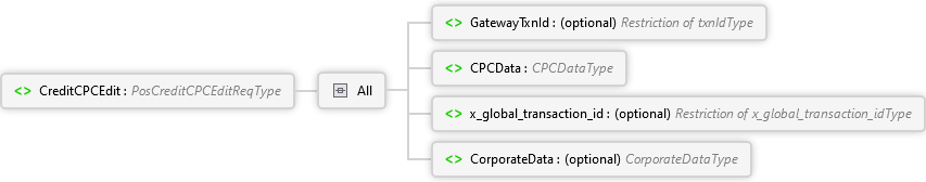 CreditCPCEdit attaches Corporate Purchase Card (CPC) data to a prior transaction. This information will be passed to the issuer at settlement when the associated card was a corporate card or an AMEX card.